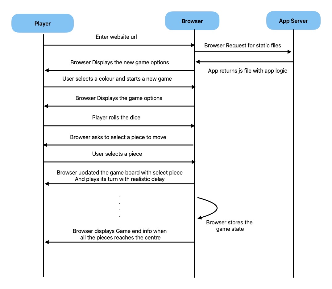 - Scope: Build Ludo game that can be played by a single user on browser (Can be a single browser for now)